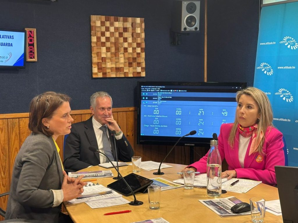 Aida Carvalho (PS), Dulcineia Moura (AD) e Nuno Simões de Melo (Chega) participaram esta quinta-feira, na Rádio Altitude, no debate das legislativas de 18 de maio.
