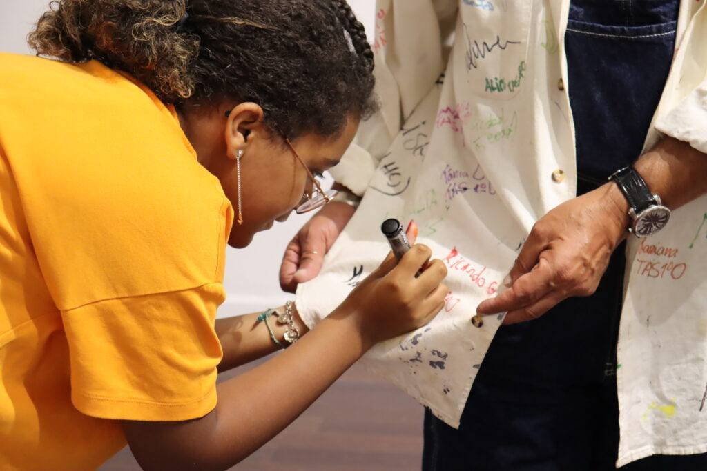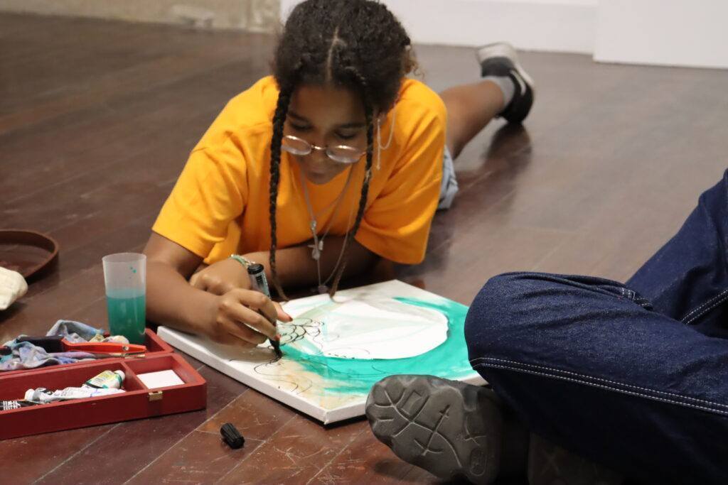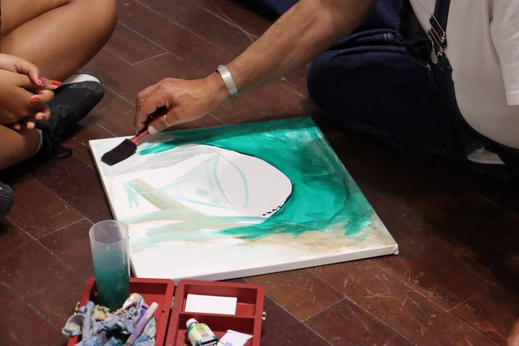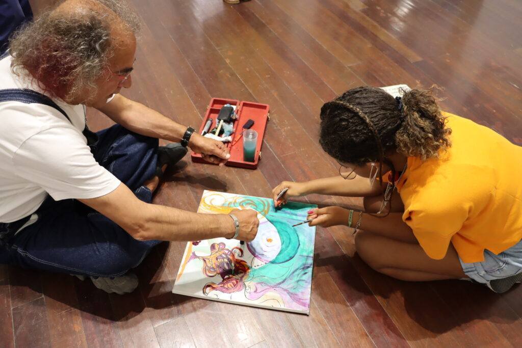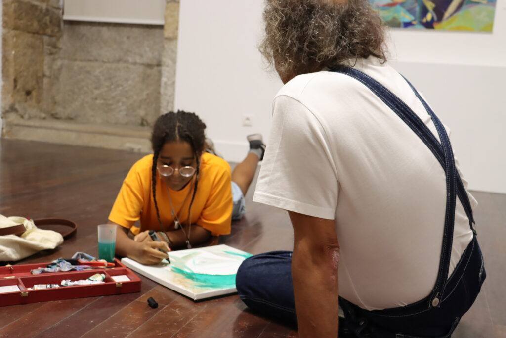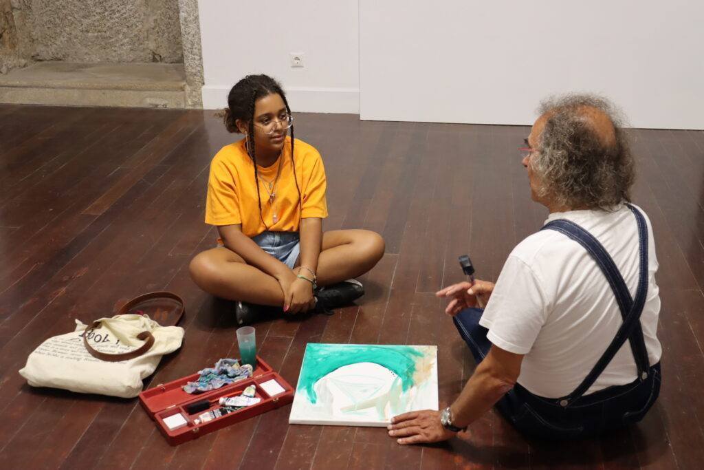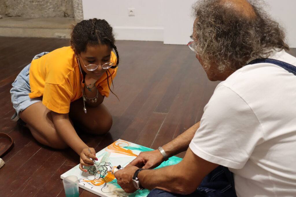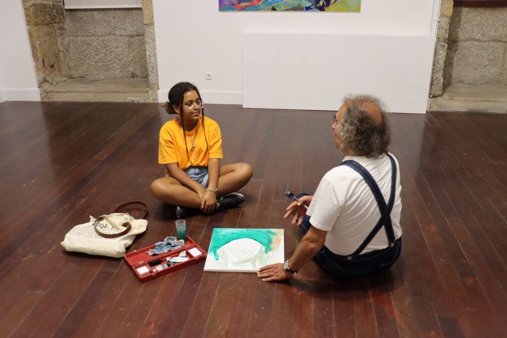 Durante esta tarde, Maria Moreno Soares, de 12 anos, e Arménio Diniz, com 65 anos de idade, dois artistas plásticos guardenses, estiveram reunidos no Museu da Guarda para pintarem um quadro em conjunto.