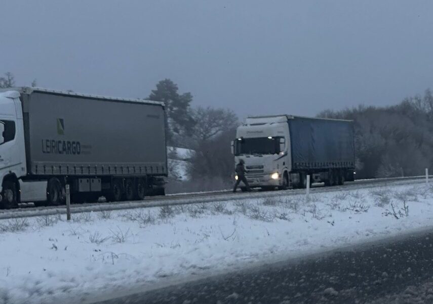 Grande fila de camiões na A25, no sentido Vilar Formoso-Guarda, após via ter sido cortada durante duas horas por causa da neve - Rádio Altitude