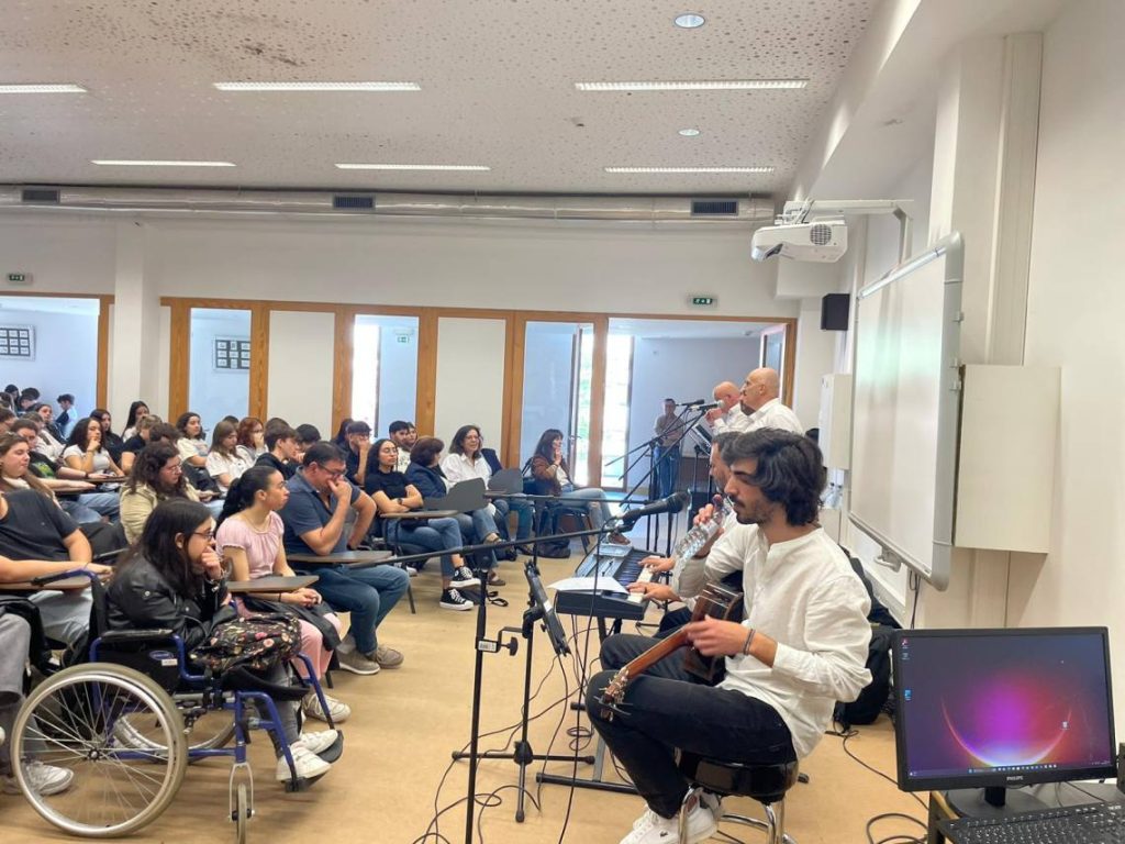 O ciclo de atuações do Grupo de Intervenção Cultural “Reflexo Imperfeito” arrancou no Grande Auditório da Escola Secundária Afonso de Albuquerque, com mais de 100 alunos e professores a assistir. O espetáculo chamado “Sentir Abril” junta a música com a poesia e está relacionado com os 50 anos da Revolução dos Cravos.