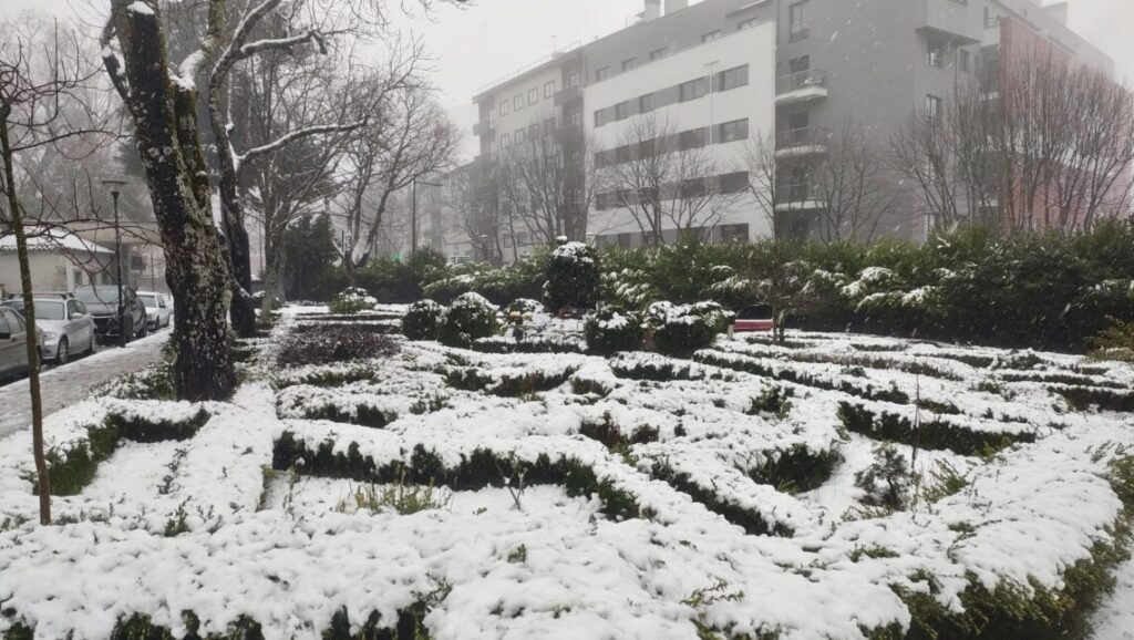A cidade da Guarda acordou, outra vez, pintada de branco. Não há registo de constrangimentos. As previsões apontam para mais neve ao final no dia.