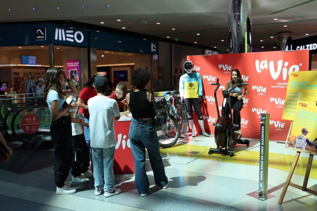 O centro comercial La Vie organizou, durante o dia de hoje, um desafio solidário para apoiar os bombeiros da cidade. A atividade chama-se “Pedalar por uma causa” e a cada quilómetro que as pessoas fizessem na bicicleta, dois euros revertiam para a corporação de bombeiros.