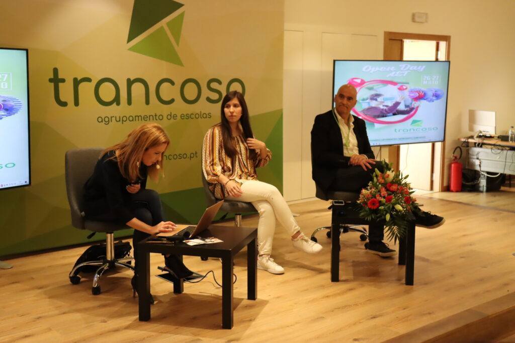 O 2º “Open Day” do Agrupamento de Escolas de Trancoso (AET) já terminou, mas aqui fica o registo fotográfico de algumas atividades realizadas esta sexta-feira, entre elas uma conversa com os jornalistas Ana Peneda Moreira (SIC) e Luís Baptista-Martins, diretor de O INTERIOR e Rádio Altitude, moderada por Inês Salvador, ex-aluna da Secundária de Trancoso e estudante de Ciências da Comunicação na UBI.