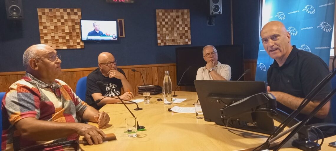 Recordar alguns momentos, memórias e figuras da nossa história foi o que fizemos esta manhã, numa tertúlia sobre a estação emissora com Albino Bárbara (que começou na RA em 1972), Carlos Martins (que chegou à RA em 1978) e Hélder Sequeira, que foi diretor da RA entre 1990 e 1995 (e aqui chegou em 1976), moderada por mim, Luís Baptista-Martins, atual Director da Rádio Altitude.